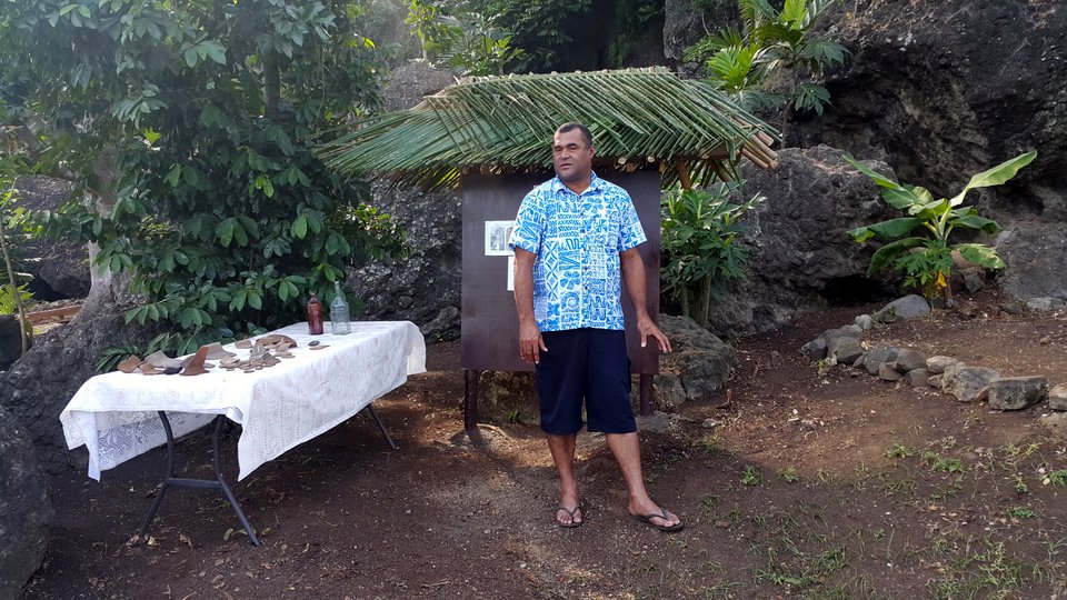 Joe cleared up a point I had about how the Fijian's cooked their food. Joe is saying that they cooked in clay pots which they brought over with them from Africa and only cooked in bamboo when caught short. And how the stone oven was used to cook the enemy, I will let Joe tell you that interesting story. He had a very interesting display of old pots fragments you can look at and touch.
