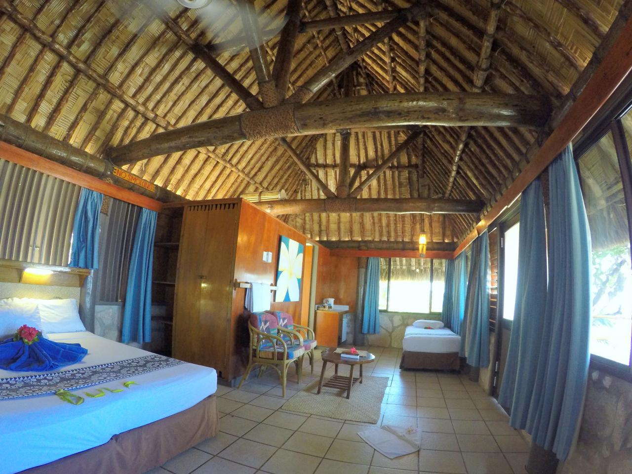 Ok, even though they are beachfront and roomy they're still in need of some renovations. More private though with lots of trees or shrubs around. Pretty good views from most depending on how far back they are. Only 3 are located right on white sand beach with swimming directly in front, while the others are on the waters edge or close to, it's not good for swimming. Good value for a family. Tea & coffee facilities and fridge. No air con only fan cooled.