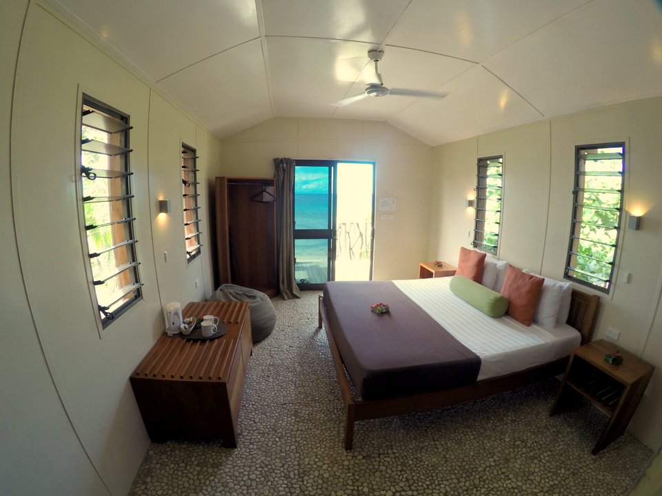 Your best choice when booking into Mantaray Island Resort is the Jungle bure. They are all down the quiet end of the resort, well spaced out, private, but again 8 to 10 steps to climb but what a good view you will have when sitting on the veranda looking out to sea with your glass of NZ chardonnay. They look like a tree house but three times the size and with an en-suite, sorry no outdoor bathroom. Should I mention the Jungle bures all have composting toilets? Still, my choice at Mantaray Island Resort is the Jungle bure.