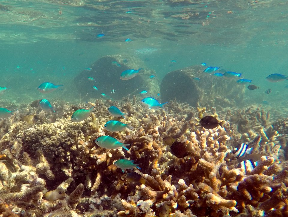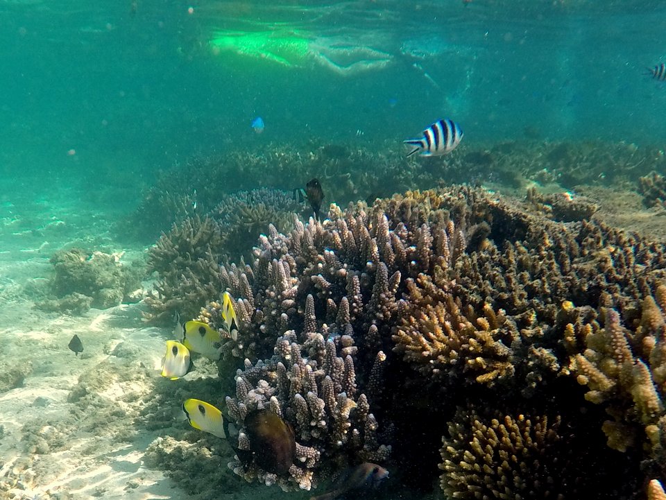 Now to the exciting part of the day, the snorkelling. Is it worth the time or a complete waste of time? By now it was high tide which made it very easy for us to walk from villa into the water. The first ten meters was boring but then we snorkeled into deeper water and found fish everywhere. The water was not that clear today because the wind was wiping up the waves which stirred up the sand, but the fish life was amazing from just ten meters off the beach, no need to pay $45 pp for a thirty minutes boat ride out to another reef. Over all the snorkelling was outstanding you will not be disappointed.